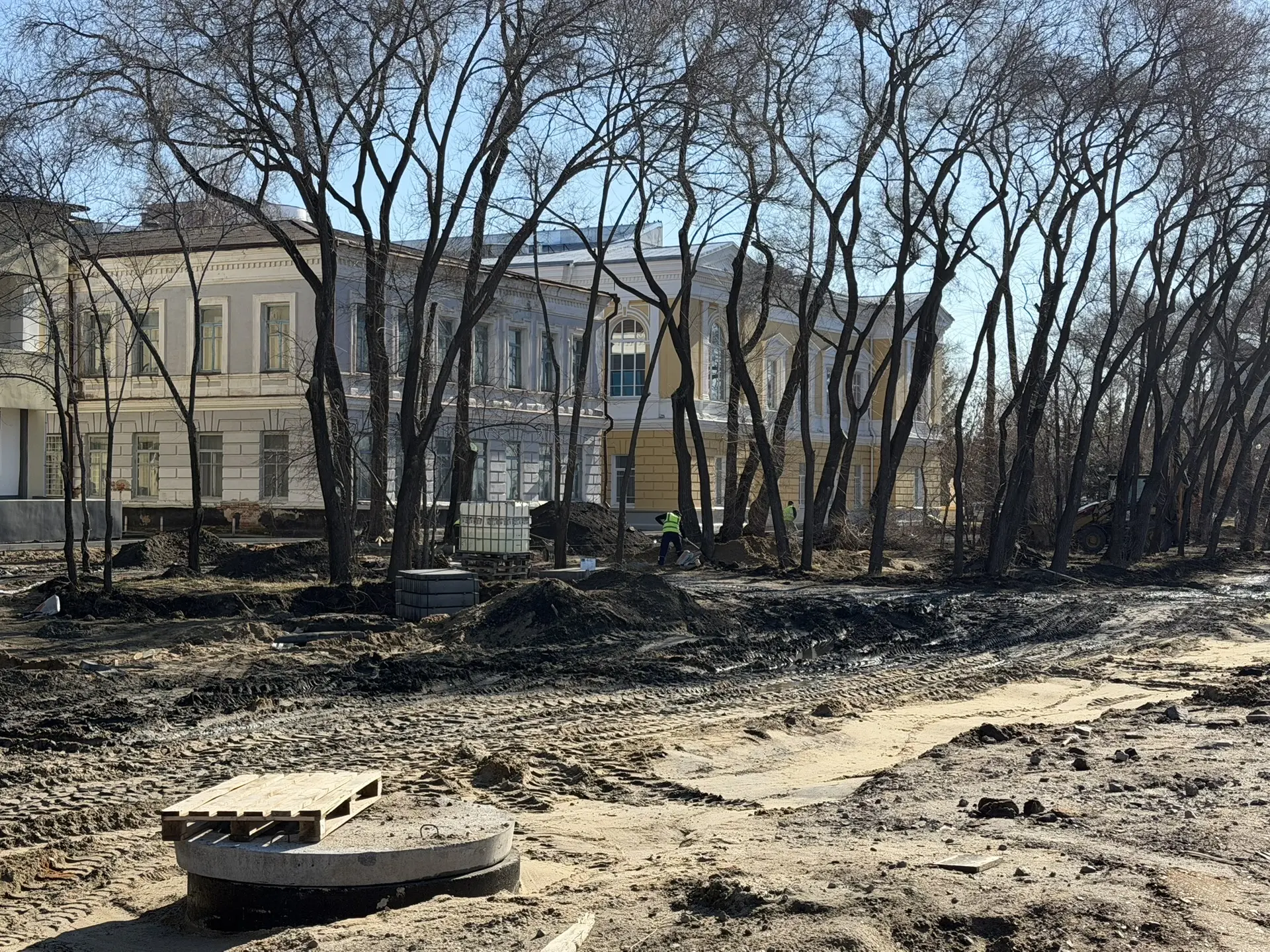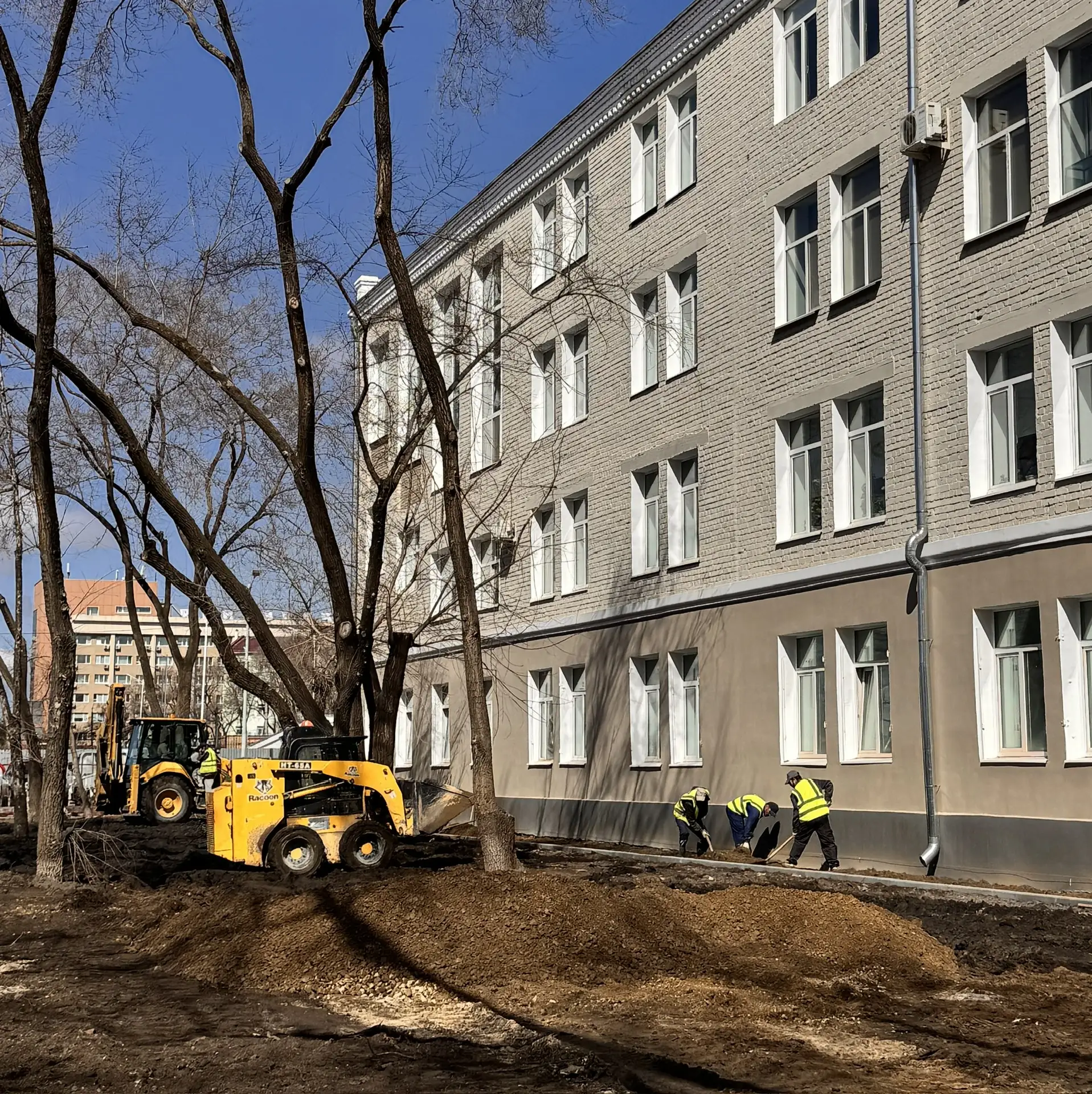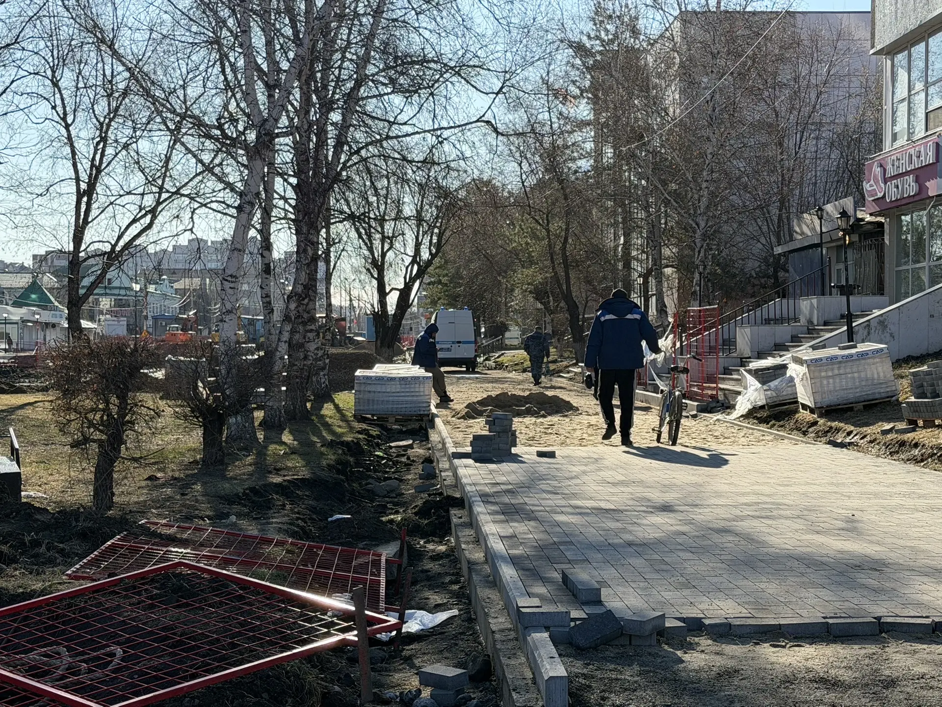 Рядом идут работы по благоустройству сквера за БГПУ. Демонтаж завершён, подрядчик устанавливает бортовые камни, готовит основание. Также практически готова система водоотведения будущего места отдыха.