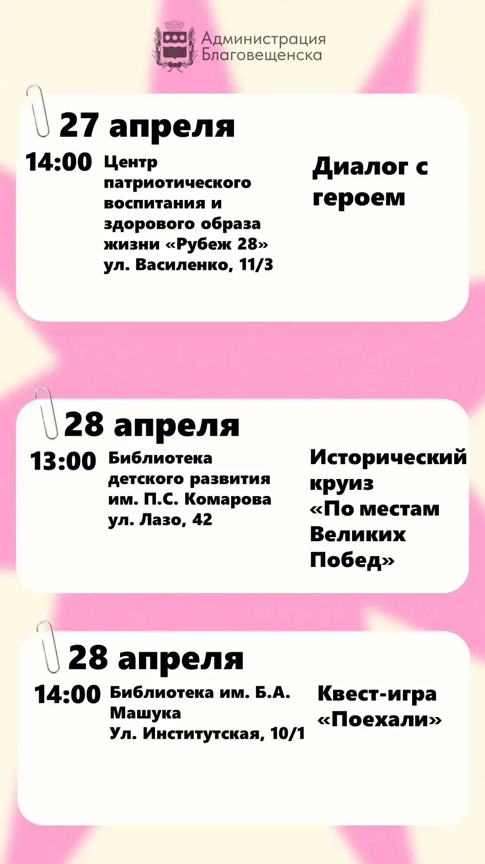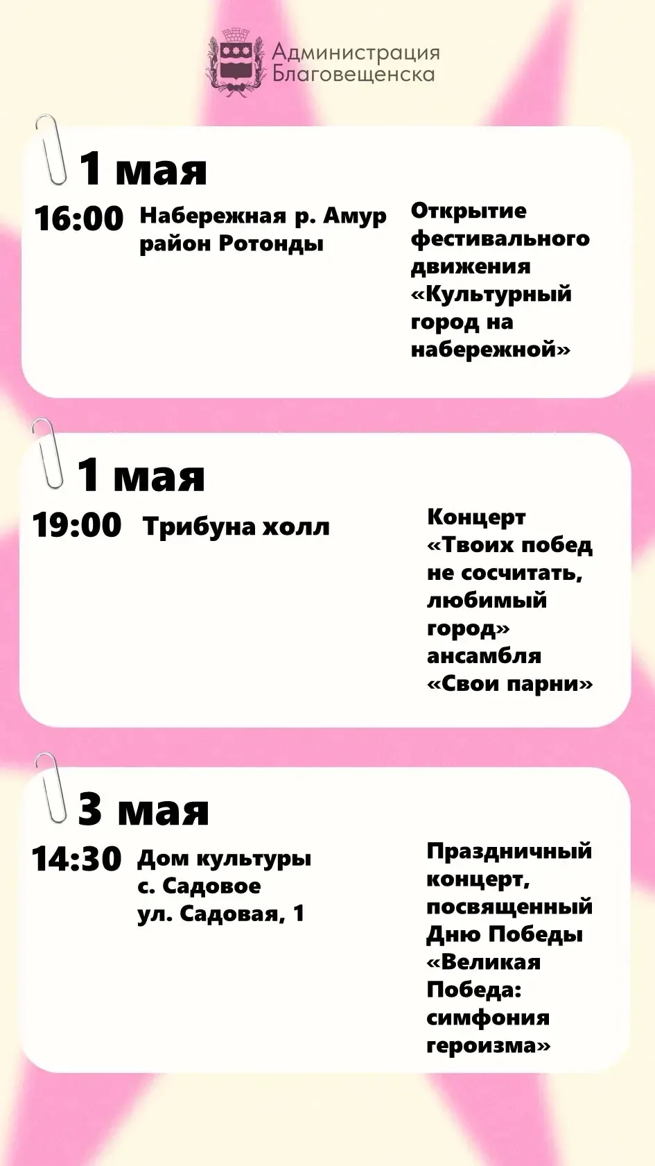 В эти дни в городе пройдёт множество спортивных, культурных и патриотических событий. Каждый найдёт занятие по душе — будь то активный отдых, творческие встречи или познавательные мероприятия.
