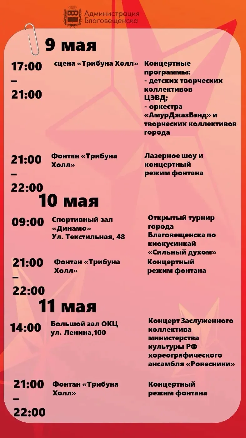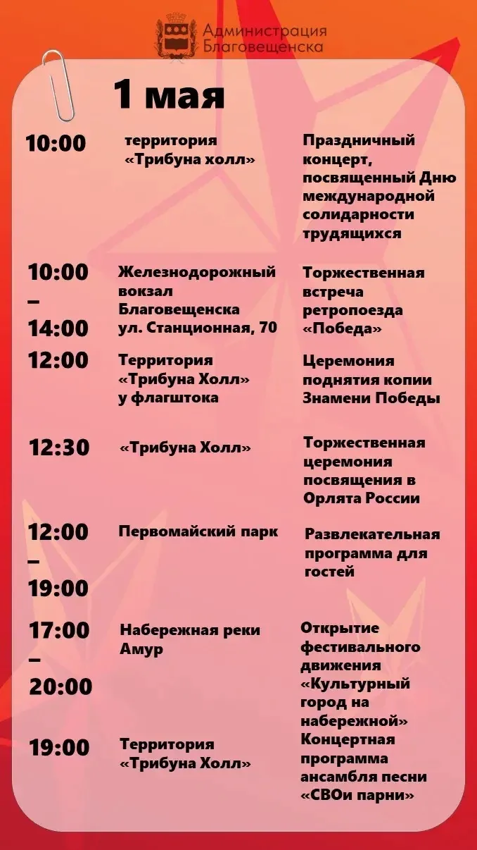 Майские праздники в Благовещенске: что интересного ждёт горожан