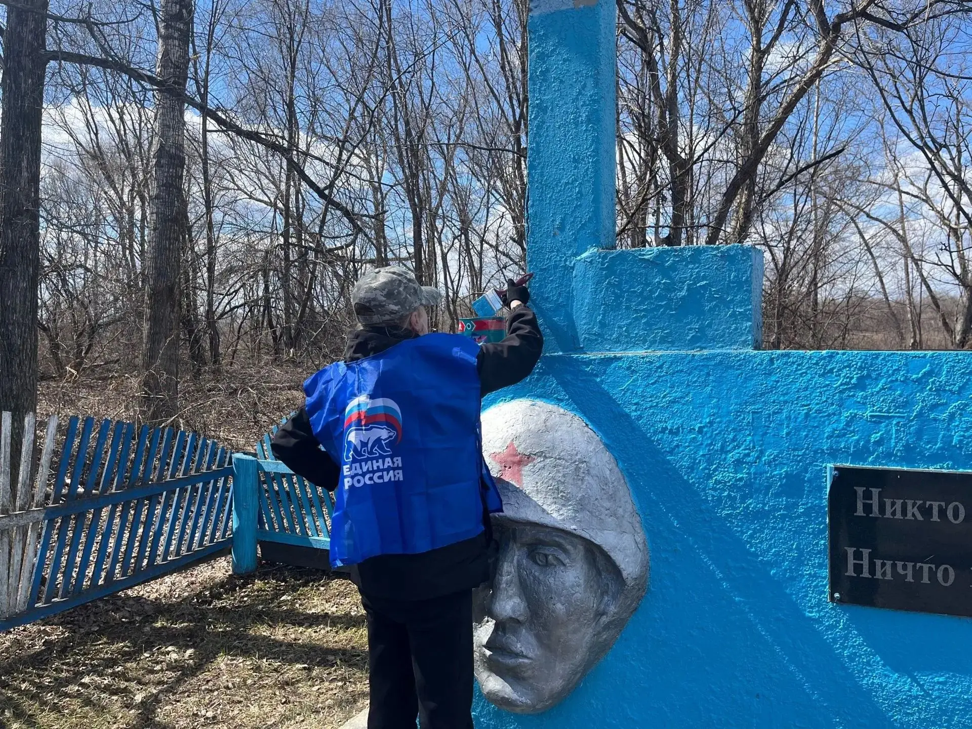 Традиционно активисты партии и общественники побывали в заброшенном селе Богословка Мазановского округа. Дома в нем опустели после масштабного наводнения в 2019 году, однако мемориал погибшим участникам Великой Отечественной войны не забыт. Его приводят в порядок каждую весну, в преддверии Дня Победы.
