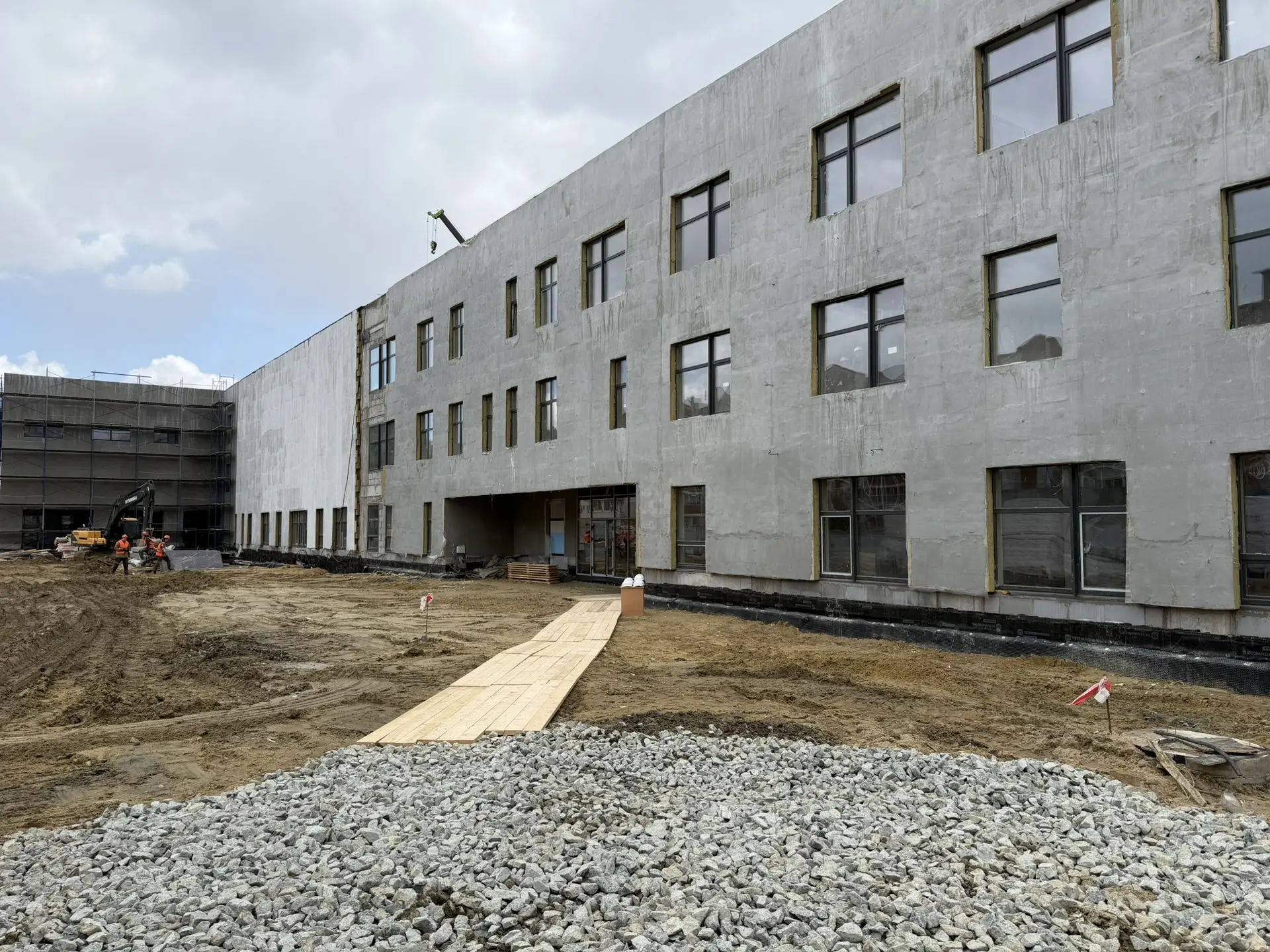 Школа на 1200 мест возводится по президентскому нацпроекту «Молодёжь и дети». Готовность объекта около 78%. Во время прямого эфира глава региона высказал опасение о сроках сдачи новой школы. Сейчас задача подрядчиков усилиться, увеличить количество рабочих на стройплощадке и уложиться в установленные даты. Планируем, что дети зайдут в новую школу на 1200 мест уже с 1 сентября. А в августе, по словам подрядчика, рядом начнется активное строительство и нового детского сада на 350 мест.