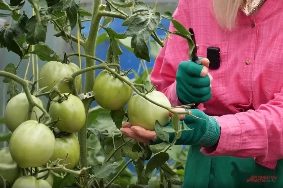 В этом сезоне из-за неблагоприятных погодных условий помидоры созревают медленнее, чем обычно. Ганичкина рекомендует, прежде всего, не переувлажнять растения. Как только плоды начинают краснеть, полив следует сократить или полностью прекратить. Она также настаивает на важности обрезки — необходимо удалить почти все листья и побеги, особенно дополнительные соцветия, которые забирают излишние питательные вещества у кустов.